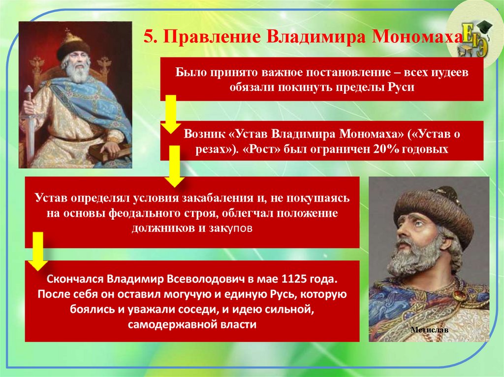 5. Правление Владимира МономахаБыло принято важное постановление – всех иудеев