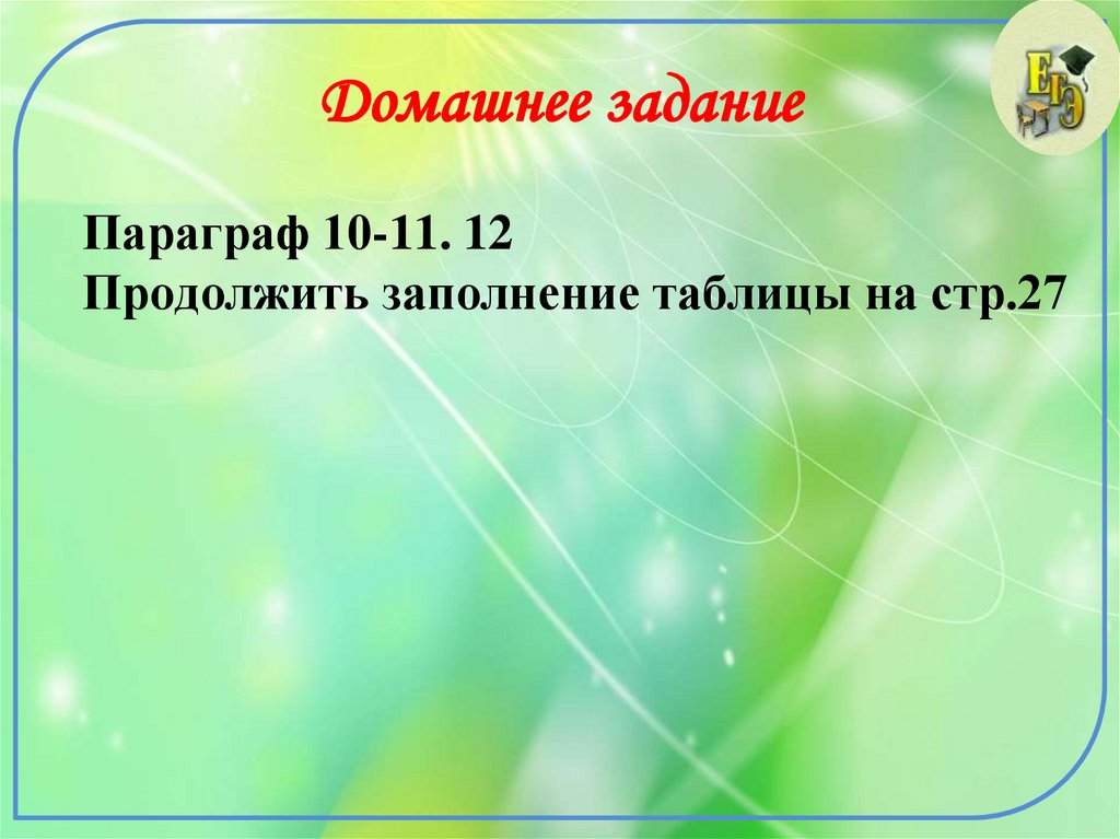 Домашнее заданиеПараграф 10-11. 12