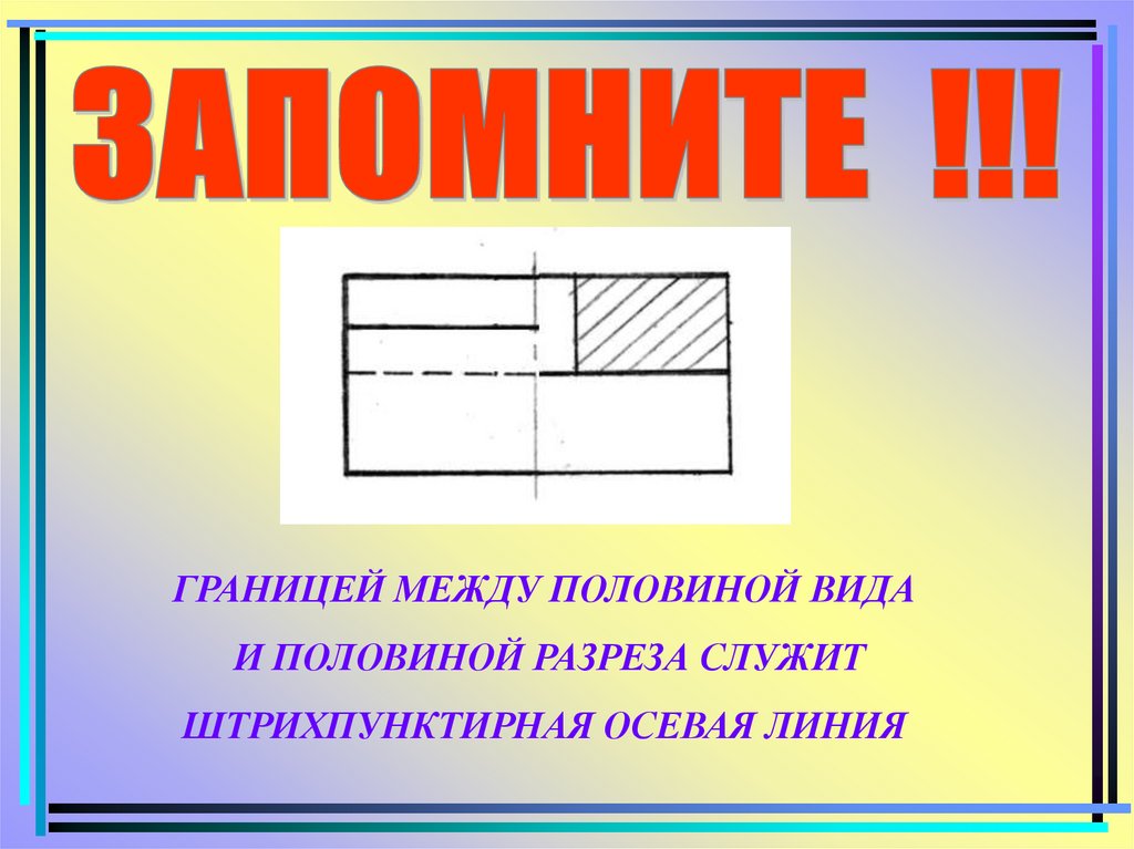 ГРАНИЦЕЙ МЕЖДУ ПОЛОВИНОЙ ВИДАИ ПОЛОВИНОЙ РАЗРЕЗА СЛУЖИТ