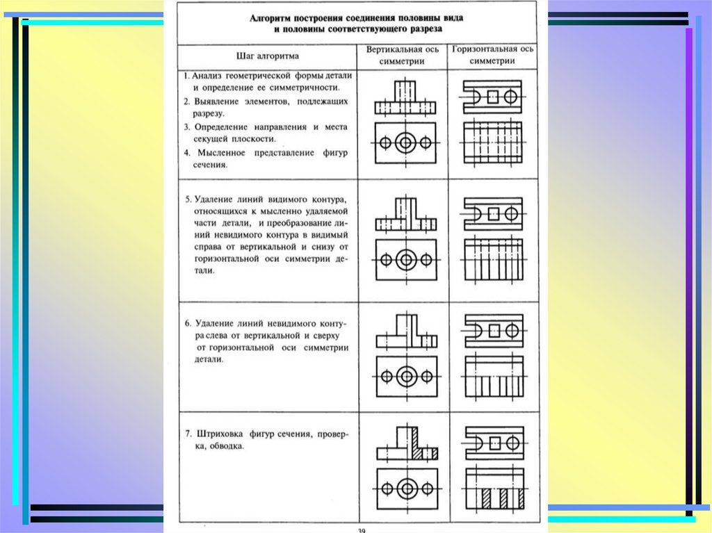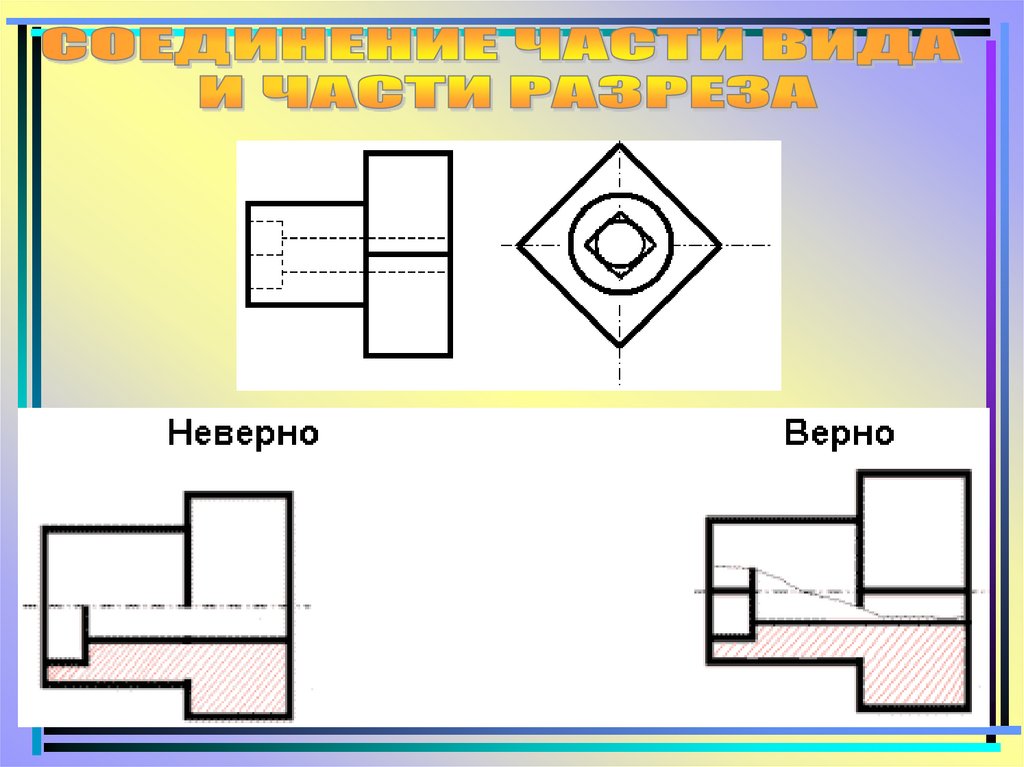 7. Правила выполнения изображений соединения половины вида и половины разреза