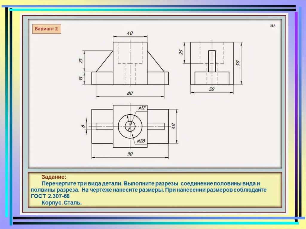 8. Нанесение размеров на чертеже, содержащем половину вида и половину разреза