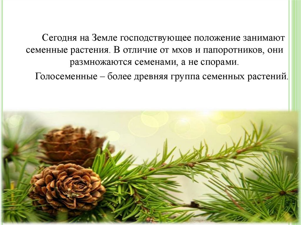 Сегодня на Земле господствующее положение занимаютсеменные растения. В отличие от мхов и папоротников, они