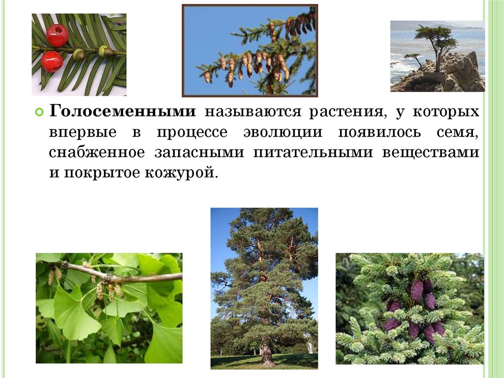 Голосеменными называются растения, у которыхвпервые в процессе эволюции появилось семя,