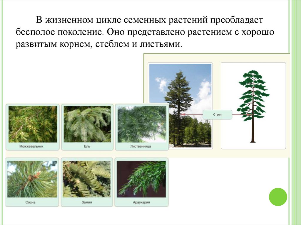 В жизненном цикле семенных растений преобладаетбесполое поколение. Оно представлено растением с хорошо
