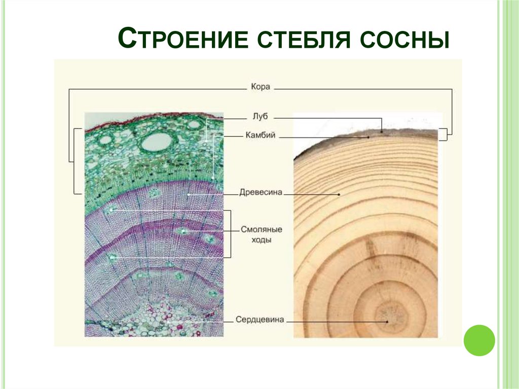 СТРОЕНИЕ СТЕБЛЯ СОСНЫ9. Многообразие листьев голосеменных