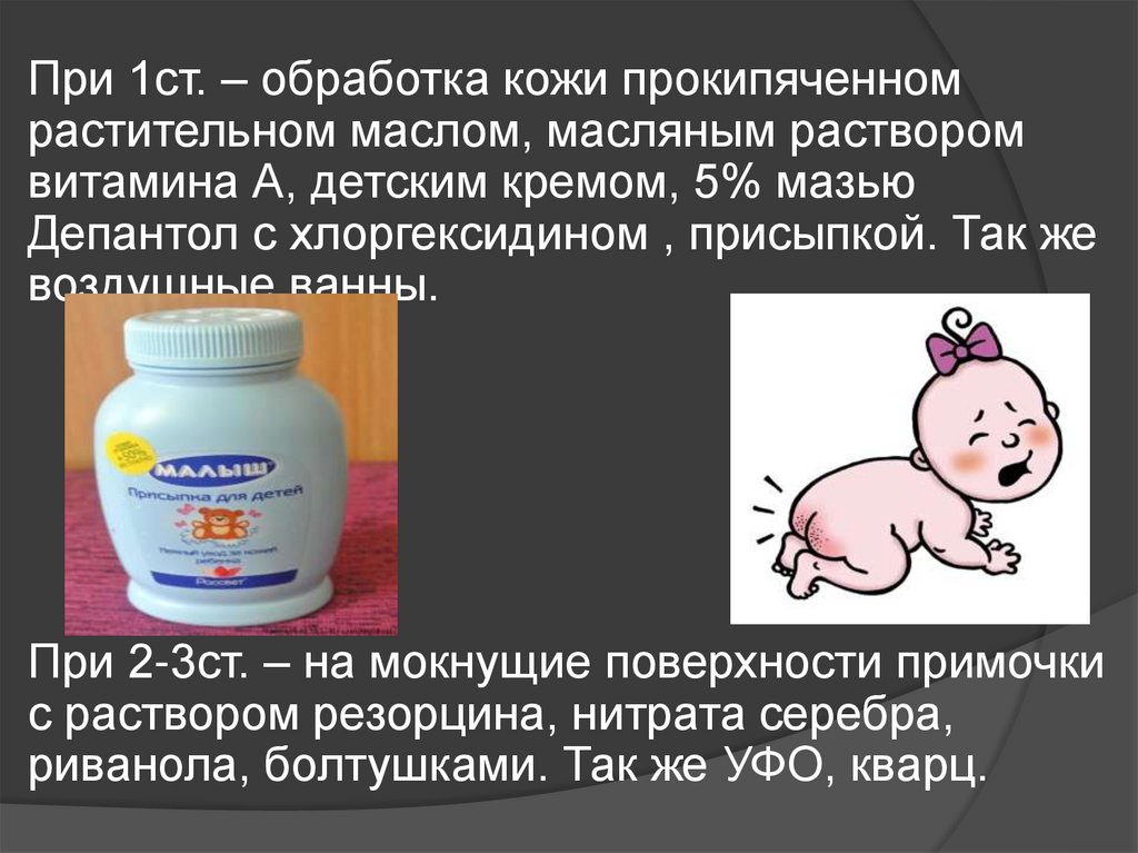 При 1ст. – обработка кожи прокипяченномрастительном маслом, масляным раствором