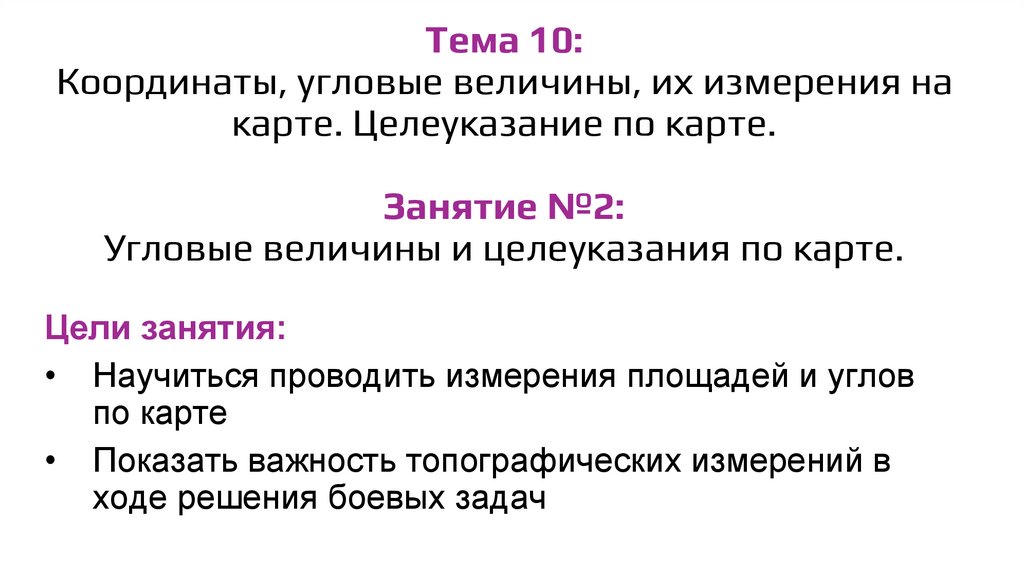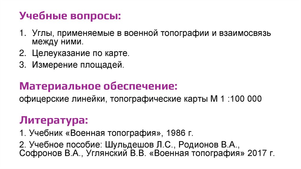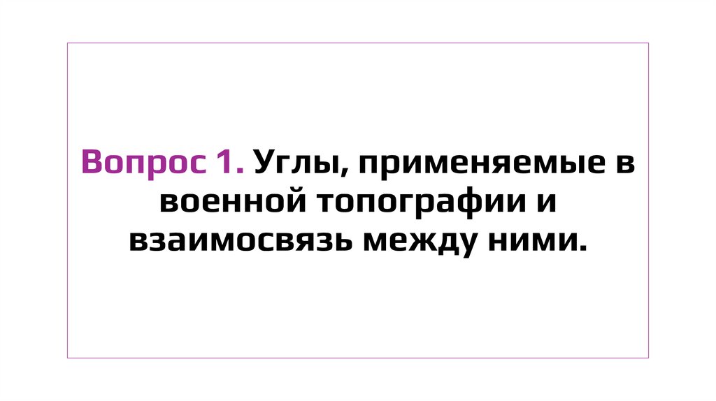 Учебные вопросы:1. Углы, применяемые в военной топографии и взаимосвязь
