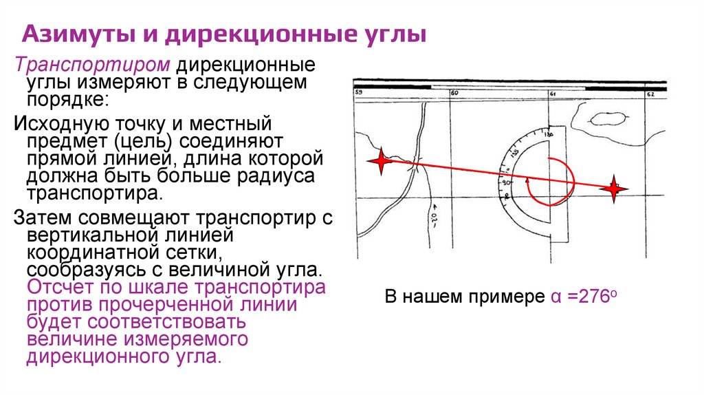 Азимуты и дирекционные углыТранспортиром дирекционные