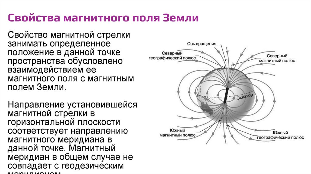 Свойства магнитного поля ЗемлиСвойство магнитной стрелки