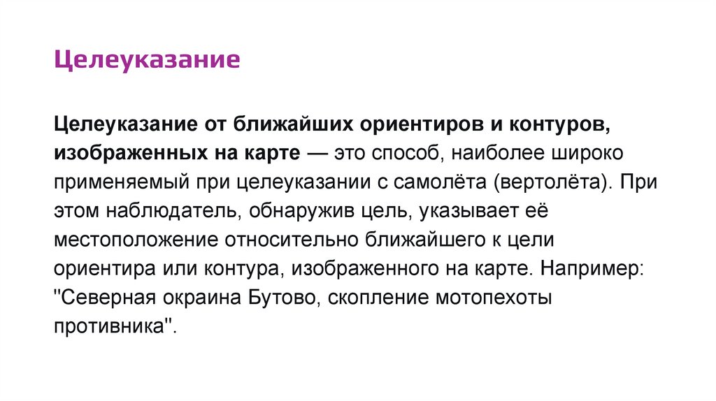 ЦелеуказаниеЦелеуказание от ближайших ориентиров и контуров,