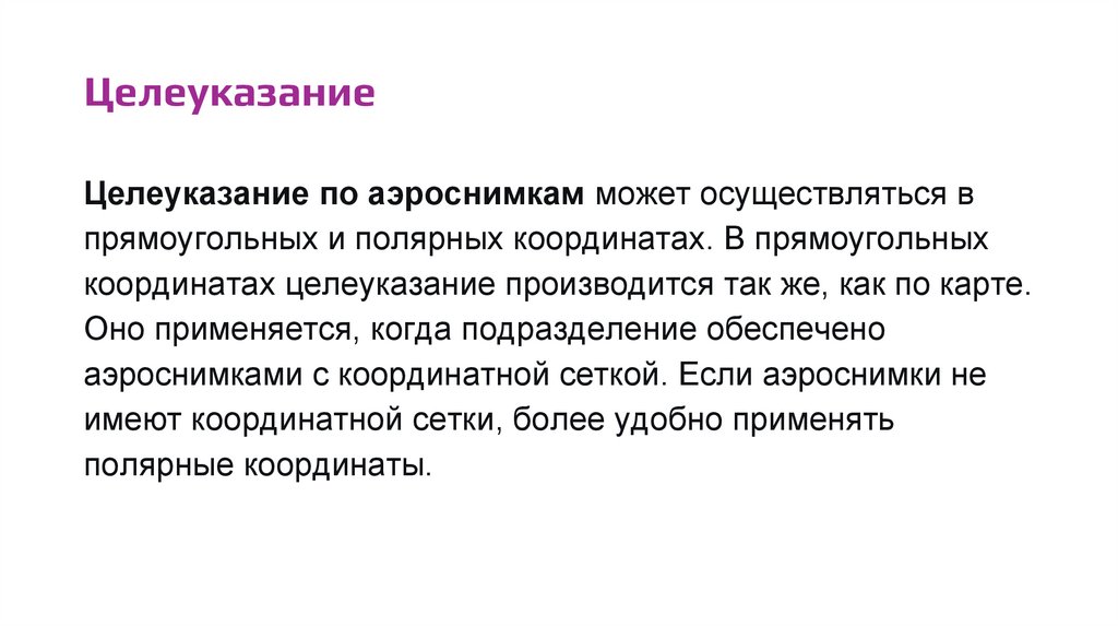 ЦелеуказаниеЦелеуказание по аэроснимкам может осуществляться в