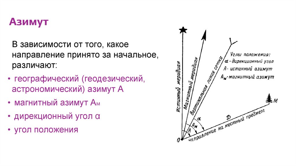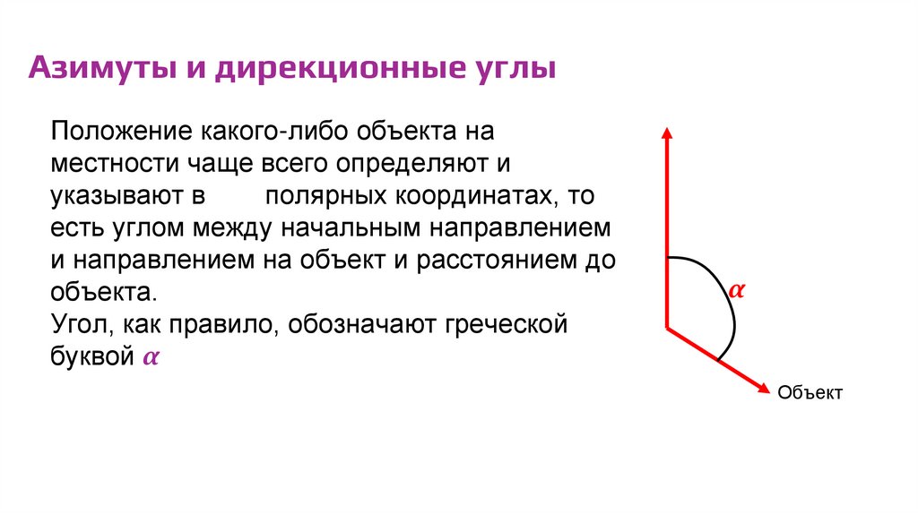 Азимуты и дирекционные углыПоложение какого-либо объекта на