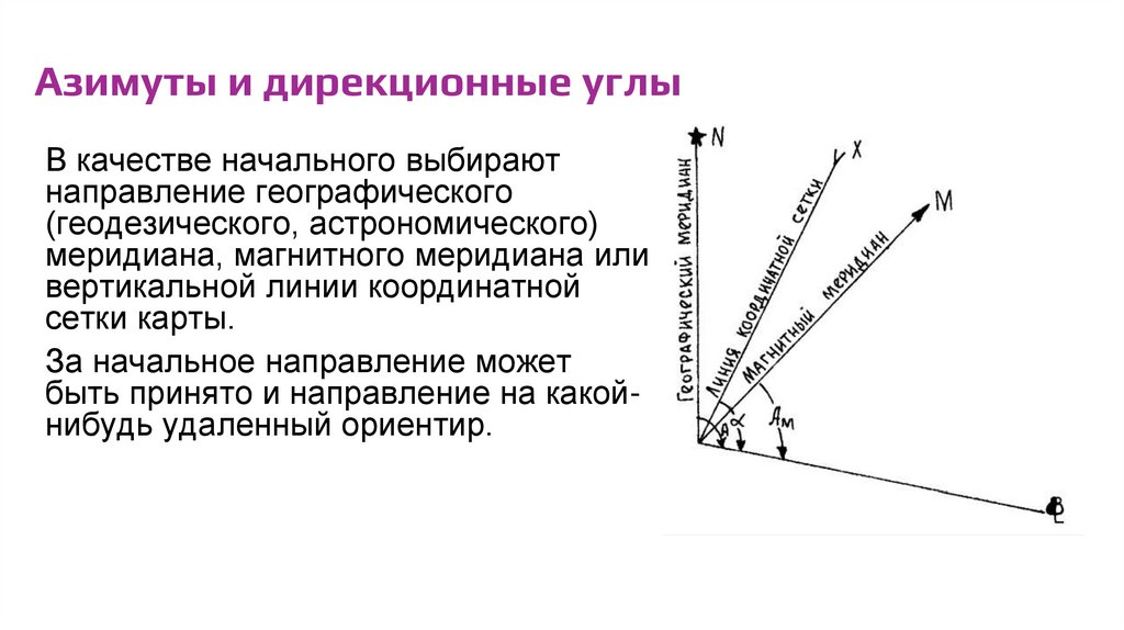 Азимуты и дирекционные углыВ качестве начального выбирают
