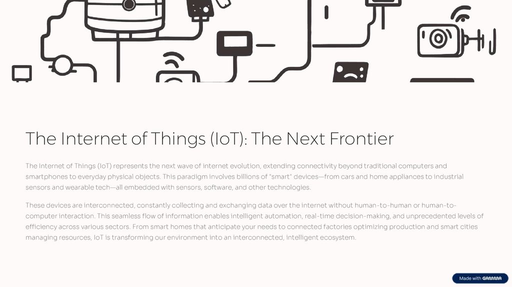 The Internet of Things (IoT): The Next FrontierThe Internet of Things (IoT) represents the next wave of internet evolution, extending connectivity beyond traditional computers and