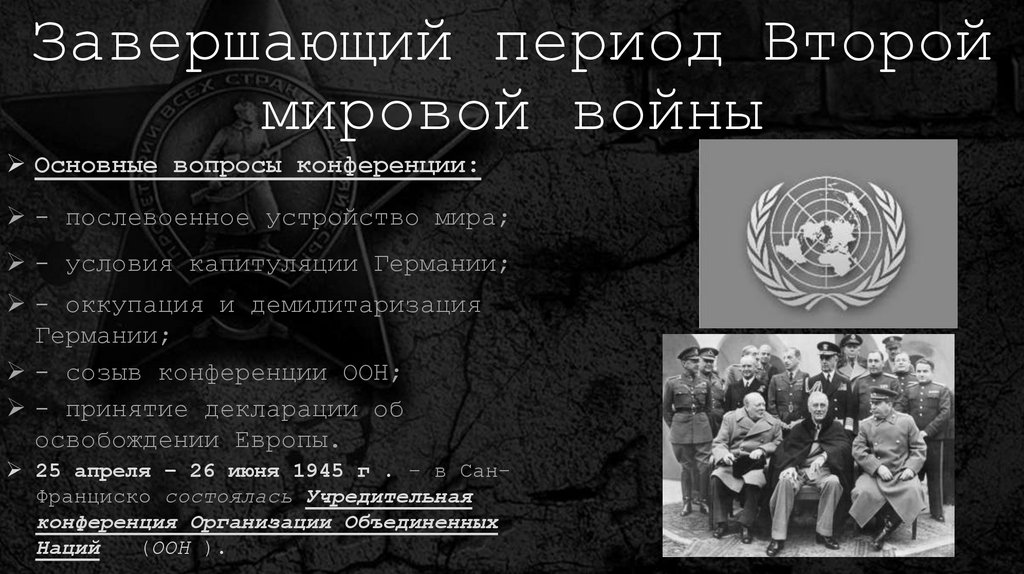 25 апреля – 26 июня 1945 г . – в СанФранциско состоялась Учредительная
