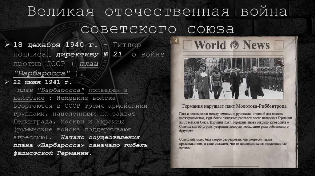 18 декабря 1940 г. - Гитлерподписал директиву № 21 о войне