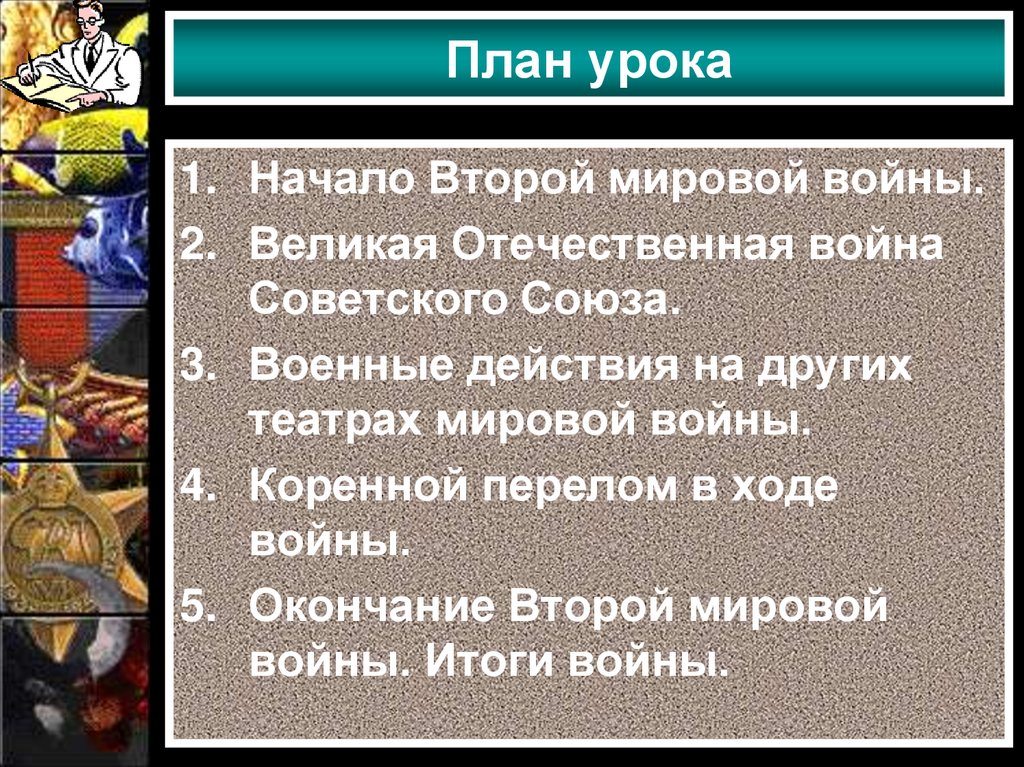 1. Начало Второй мировой войны.2. Великая Отечественная война
