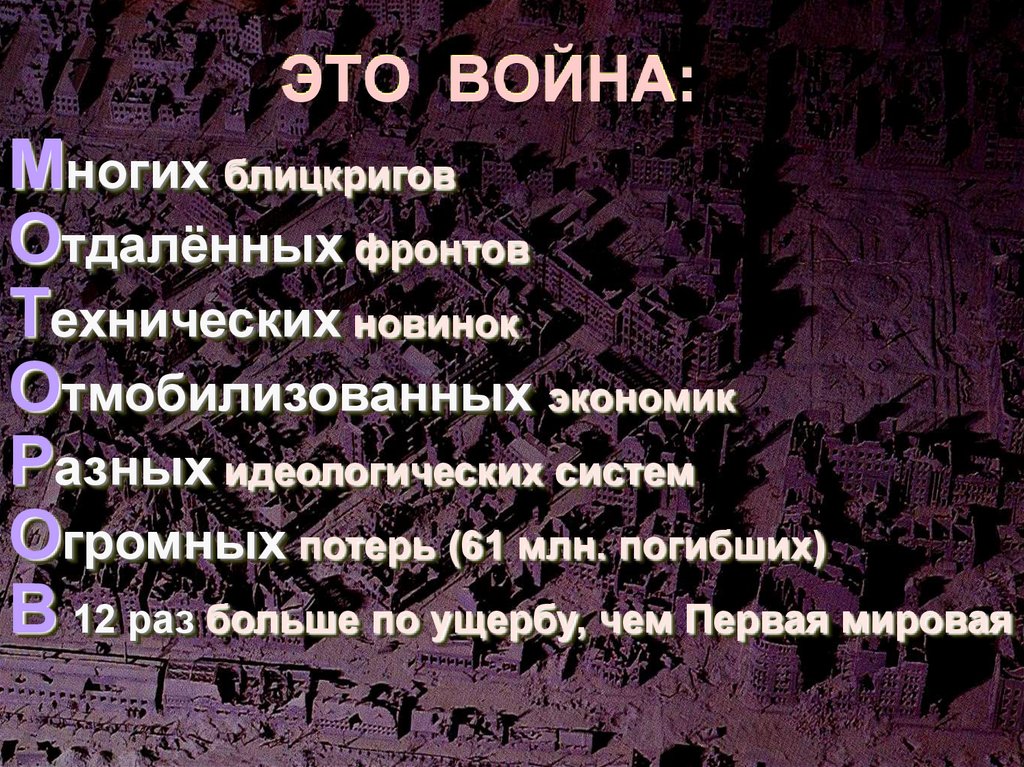 Принимало участие 61 государство80% населения Земли было охвачено войной