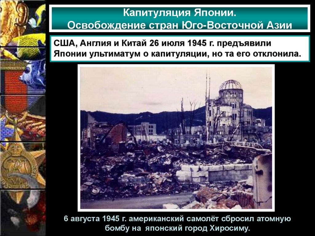 США, Англия и Китай 26 июля 1945 г. предъявилиЯпонии ультиматум о капитуляции, но та его отклонила.