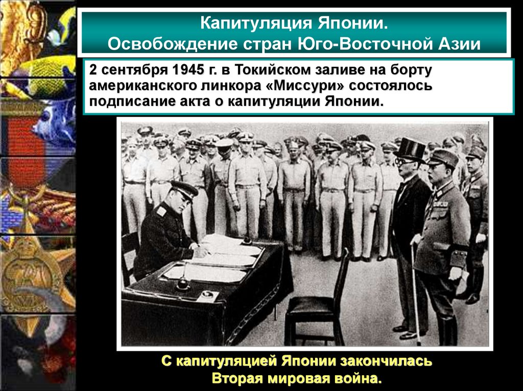 2 сентября 1945 г. в Токийском заливе на бортуамериканского линкора «Миссури» состоялось
