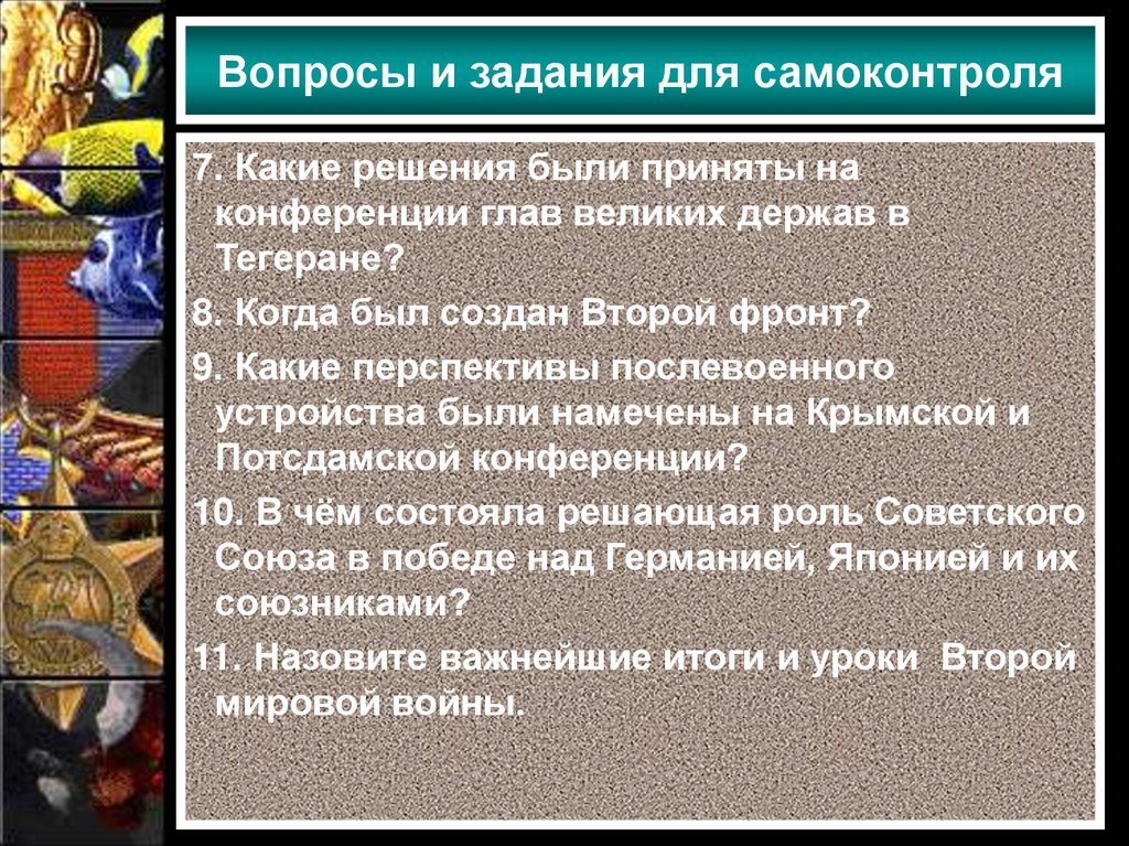 Вопросы и задания для самоконтроля1.Как началась Вторая мировая война?