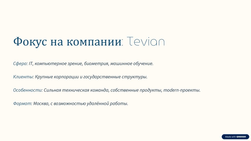 Фокус на компании: TevianСфера: IT, компьютерное зрение, биометрия, машинное обучение.