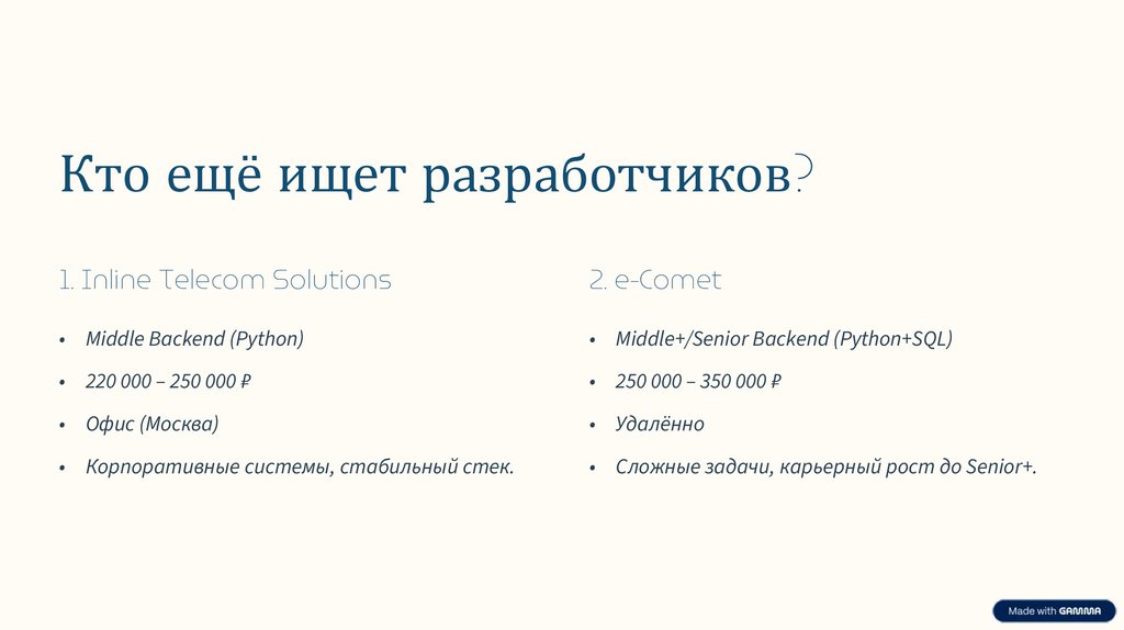 Кто ещё ищет разработчиков?1. Inline Telecom Solutions