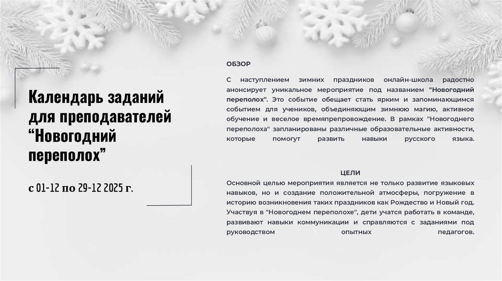 С 20 декабря по 30 декабря - время для проведения финального праздничного урока.