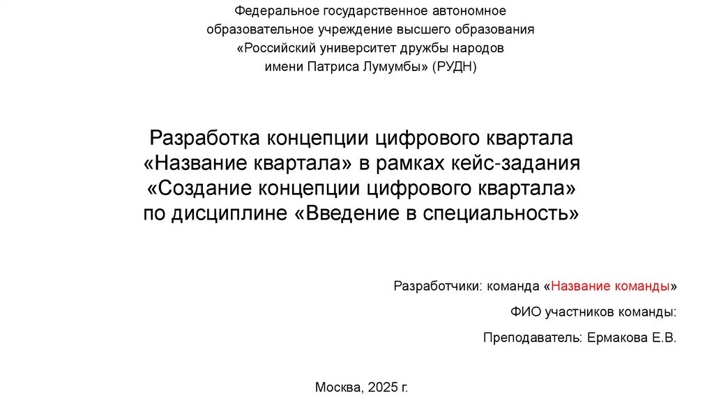 1. Разработка концепции цифрового квартала «Название квартала» в рамках кейс-задания «Создание концепции цифрового квартала» по