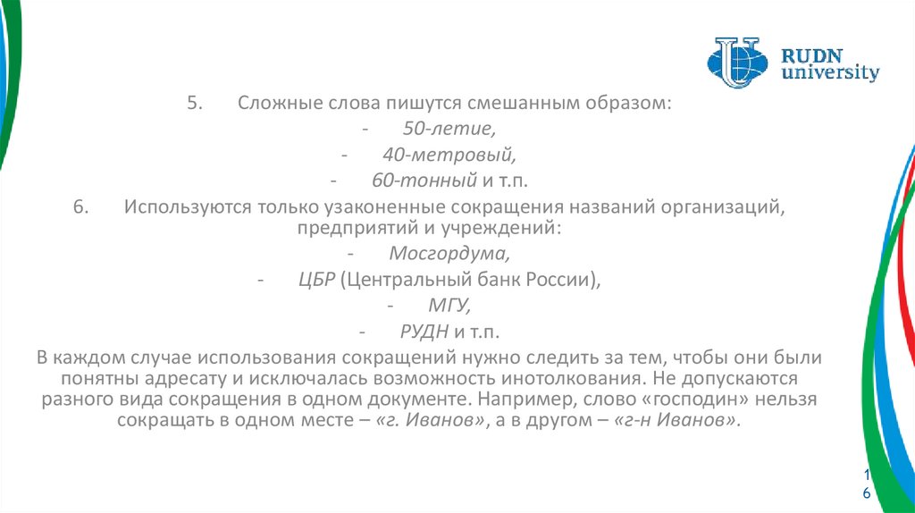 понятны адресату, и при необходимости давать их объяснение. Приведем примеры разных