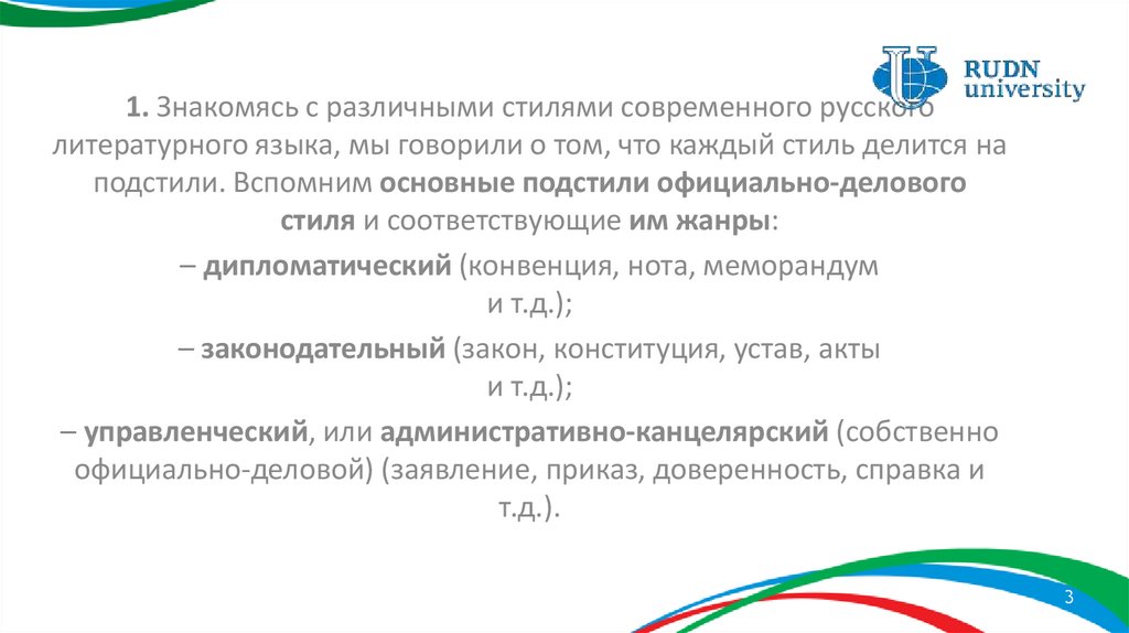 подстили. Вспомним основные подстили официально-делового