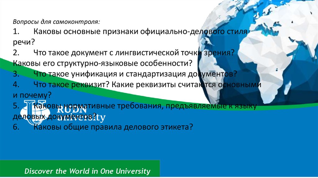 Речевой этикет документа.