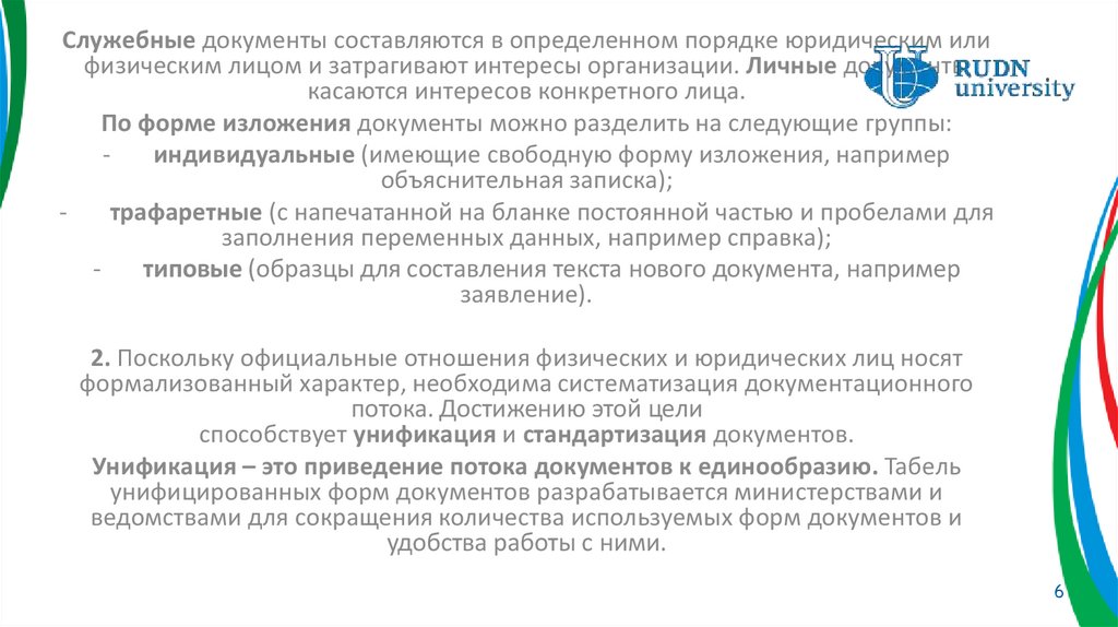 формализованный характер, необходима систематизация документационного