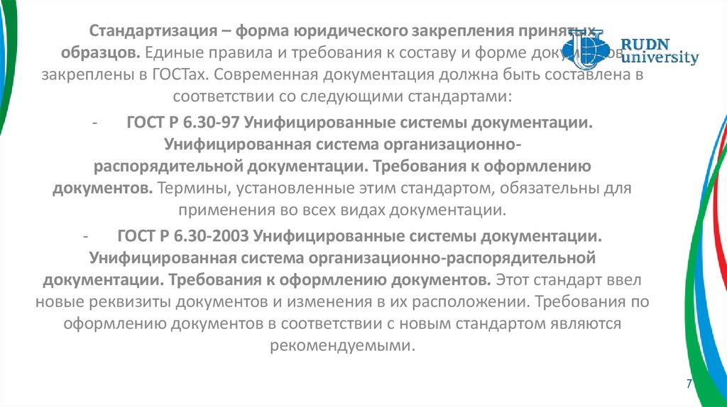 Стандартизация – форма юридического закрепления принятыхобразцов. Единые правила и требования к составу и форме документов