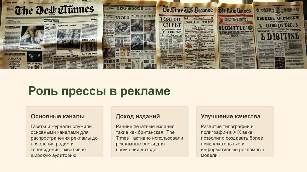 Роль прессы в рекламеОсновные каналы