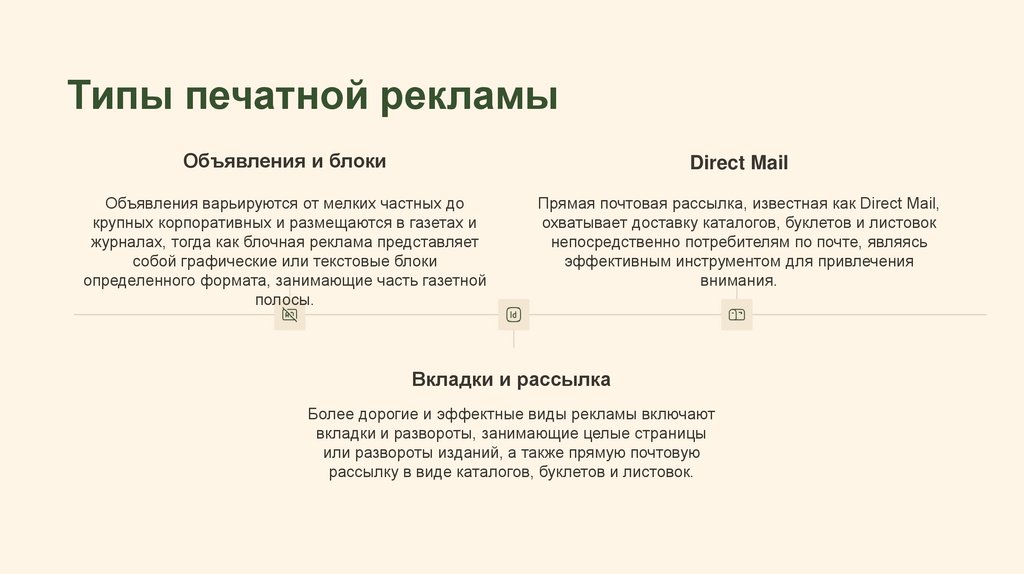 Типы печатной рекламыОбъявления и блоки