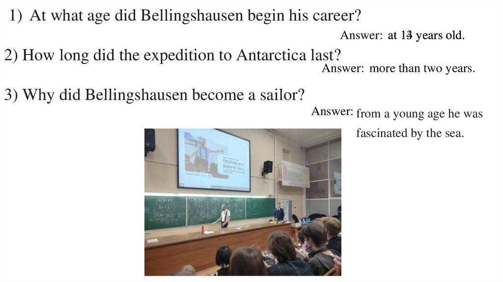 1) At what age did Bellingshausen begin his career?Answer: at 14