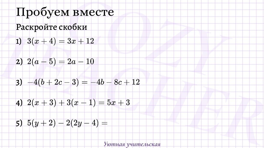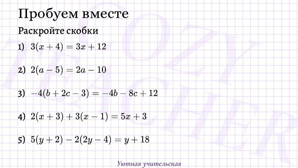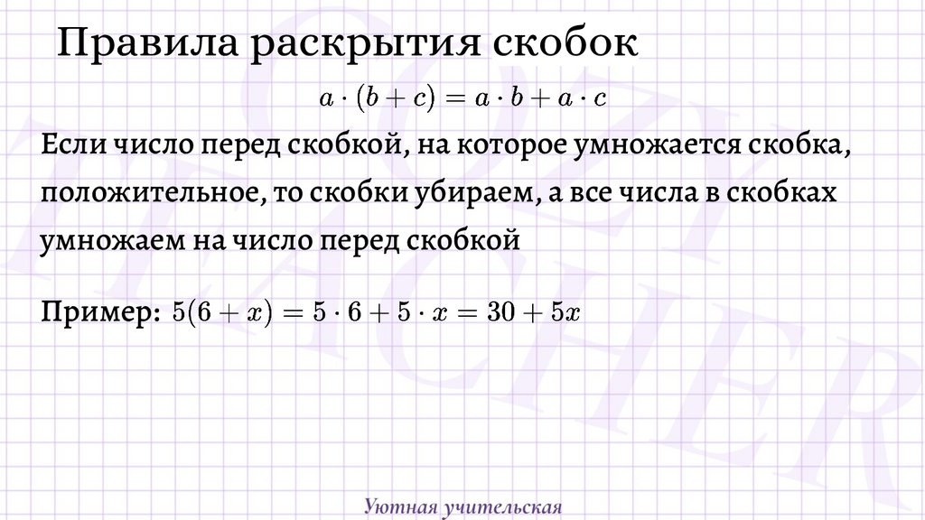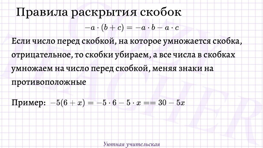 Правила раскрытия скобокЕсли число перед скобкой, на которое умножается скобка,
