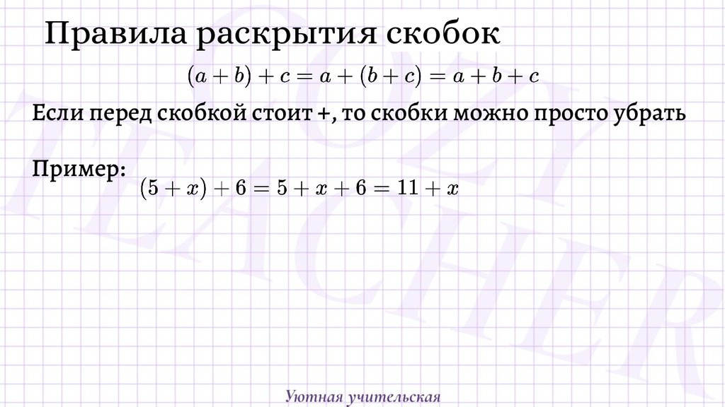 Правила раскрытия скобокЕсли перед скобкой стоит +, то скобки можно просто убрать
