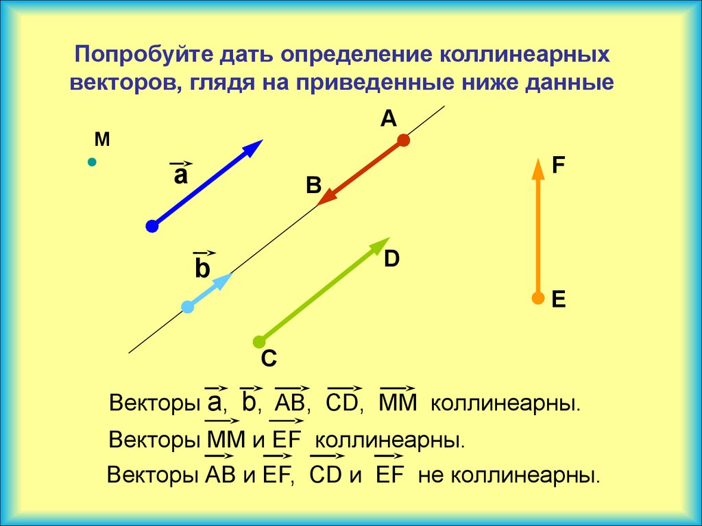 Попробуйте дать определение коллинеарныхвекторов, глядя на приведенные ниже данные