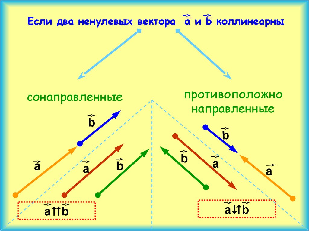 Если два ненулевых вектора a и b коллинеарнысонаправленные