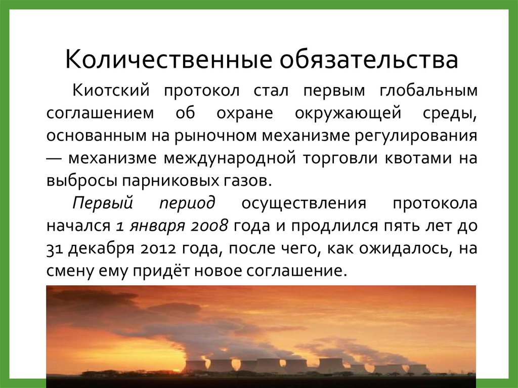 Количественные обязательстваКиотский протокол стал первым глобальным