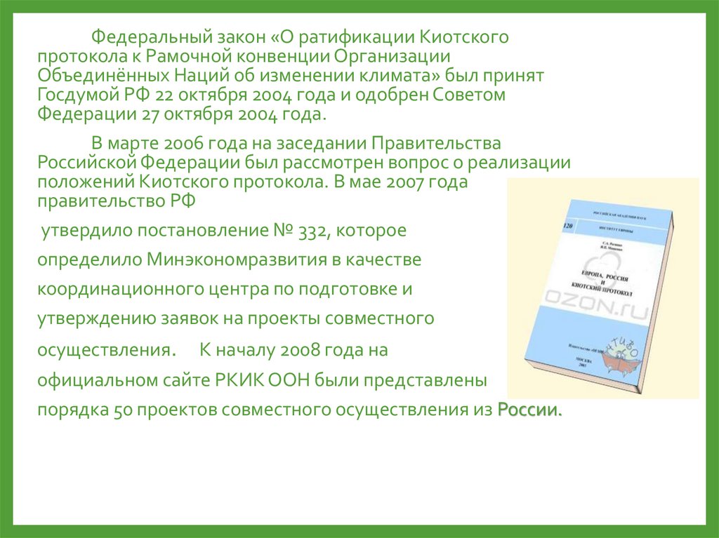 Федеральный закон «О ратификации Киотскогопротокола к Рамочной конвенции Организации