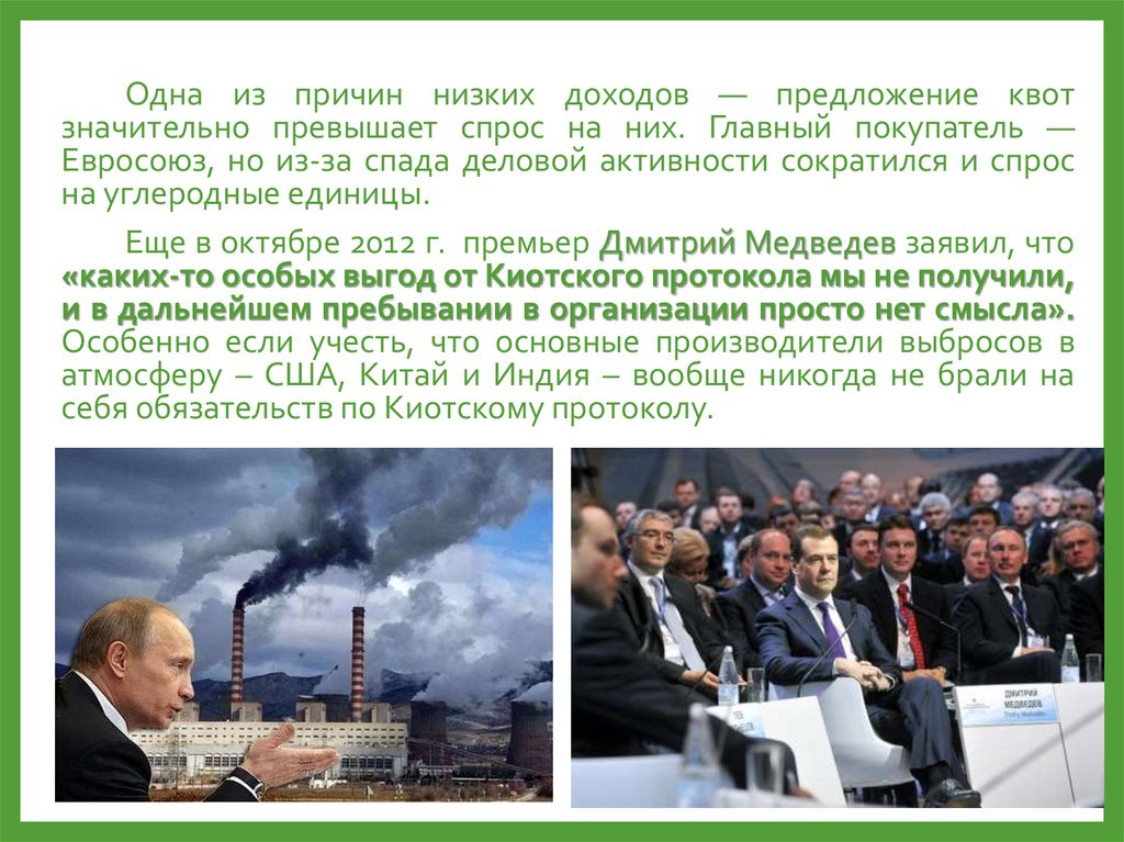 «каких-то особых выгод от Киотского протокола мы не получили,