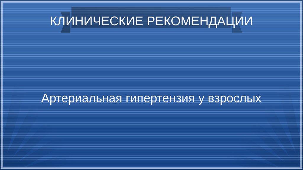 КЛИНИЧЕСКИЕ РЕКОМЕНДАЦИИАртериальная гипертензия у взрослых