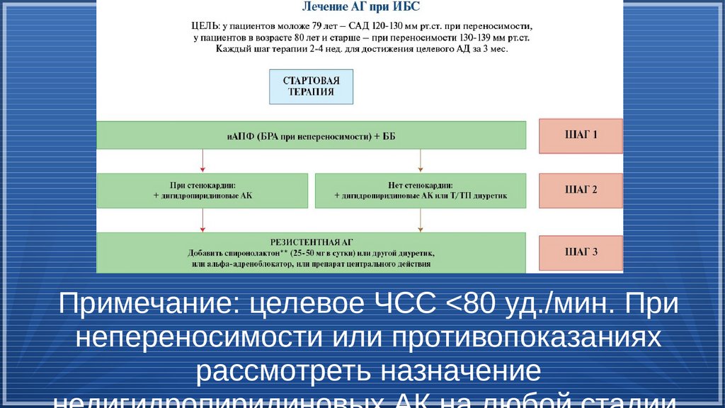 Примечание: целевое ЧСС <80 уд./мин. Принепереносимости или противопоказаниях