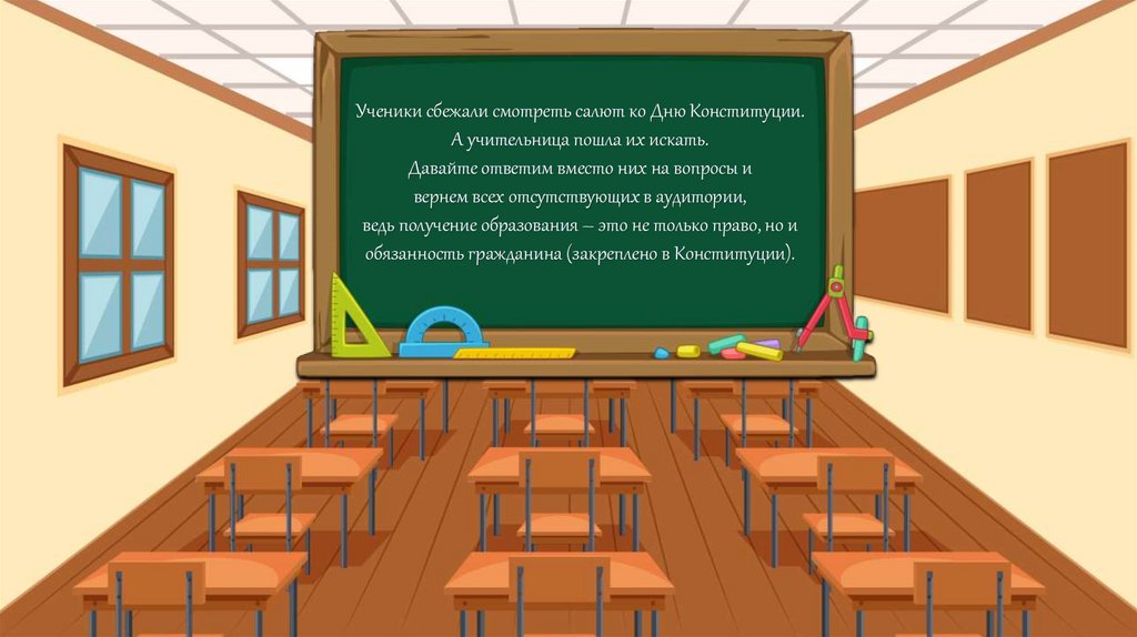 Ученики сбежали смотреть салют ко Дню Конституции.А учительница пошла их искать.