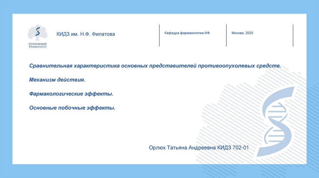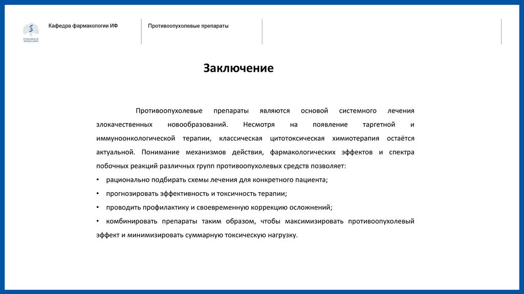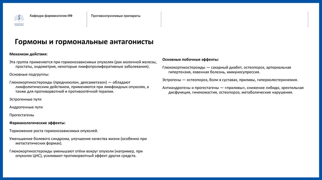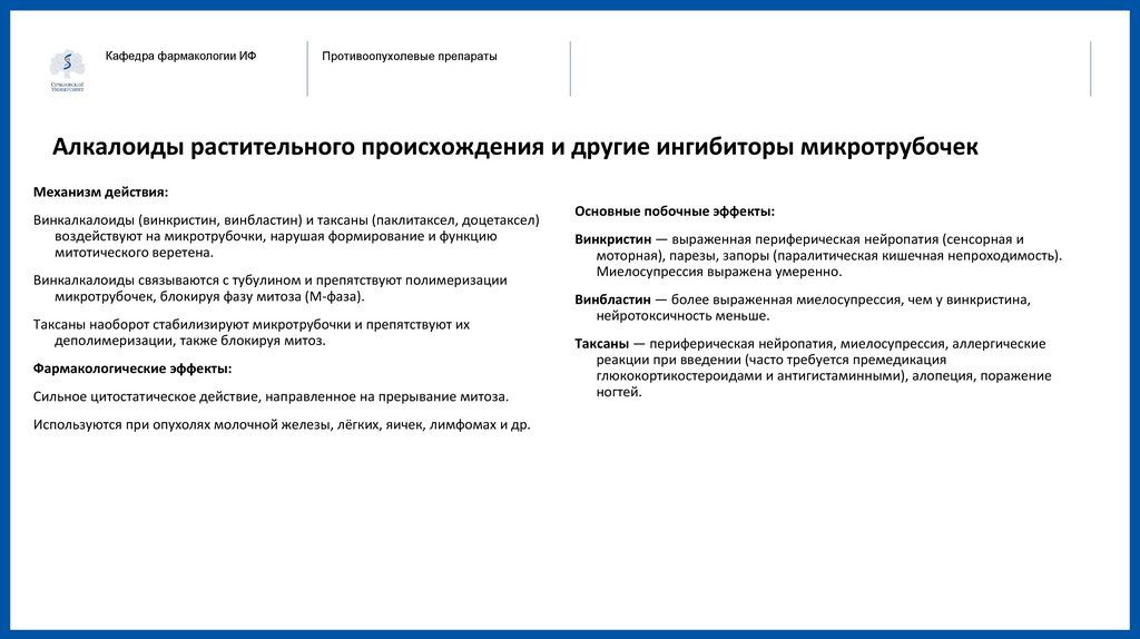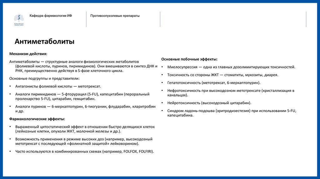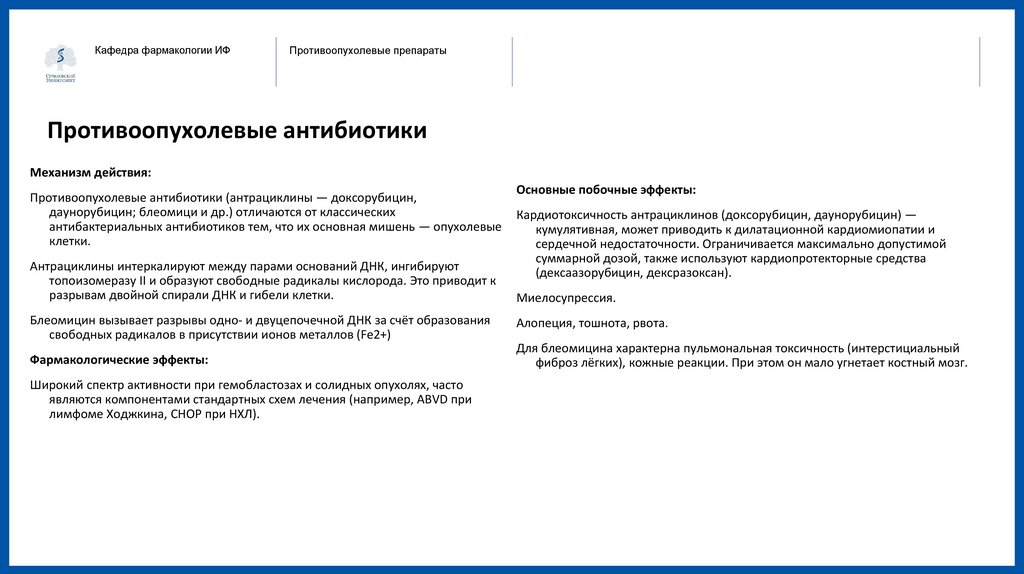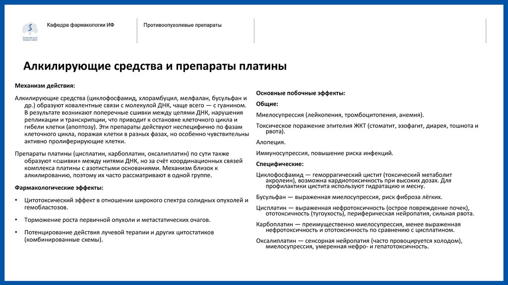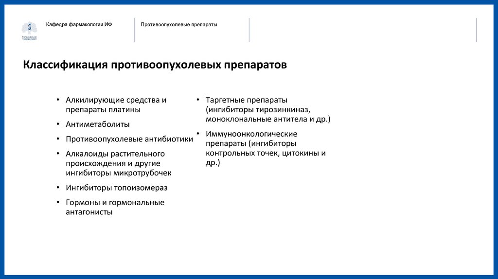 Кафедра фармакологии ИФПротивоопухолевые препараты