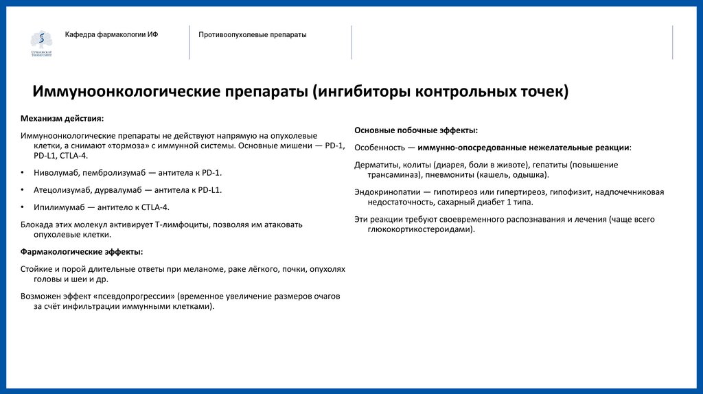 Иммуноонкологические препараты (ингибиторы контрольных точек)