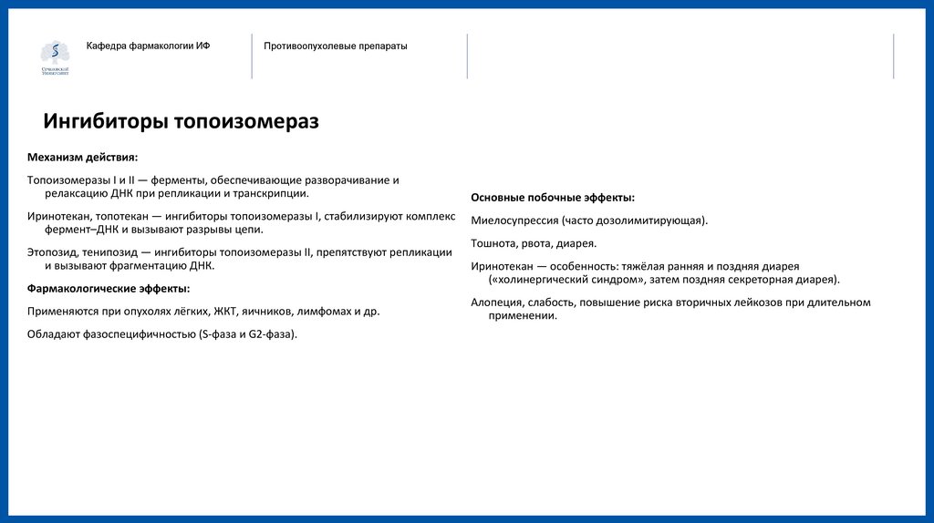 Этопозид, тенипозид — ингибиторы топоизомеразы II, препятствуют репликации